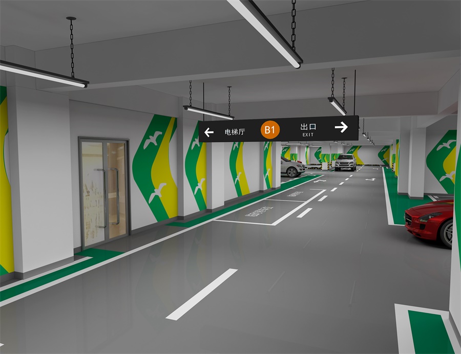 在傳統停車場的車位、標線的施劃基礎上,融入彩色環氧地坪、立柱、藝術墻、燈箱等分區標識,已逐漸成為住宅、商業綜合體等停車場中的新趨勢。為車主打造更加安全舒適、方便、快捷和開放的空間,實現停車場運行的高效化、節能化、環保化。